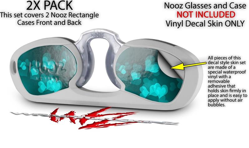 Decal Style Vinyl Skin Wrap 2 Pack for Nooz Glasses Rectangle Case Bokeh Hearts Neon Teal (NOOZ NOT INCLUDED) by WraptorSkinz