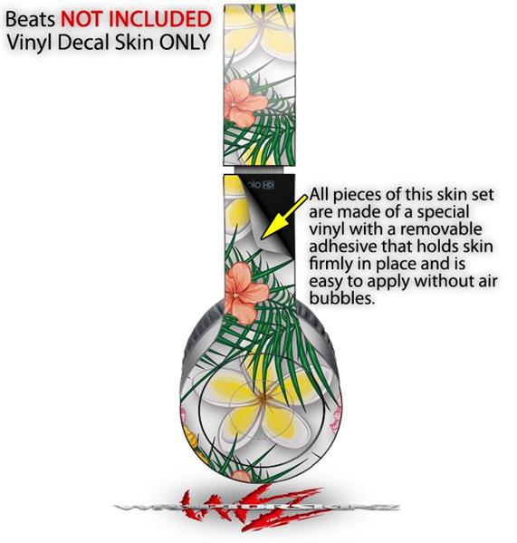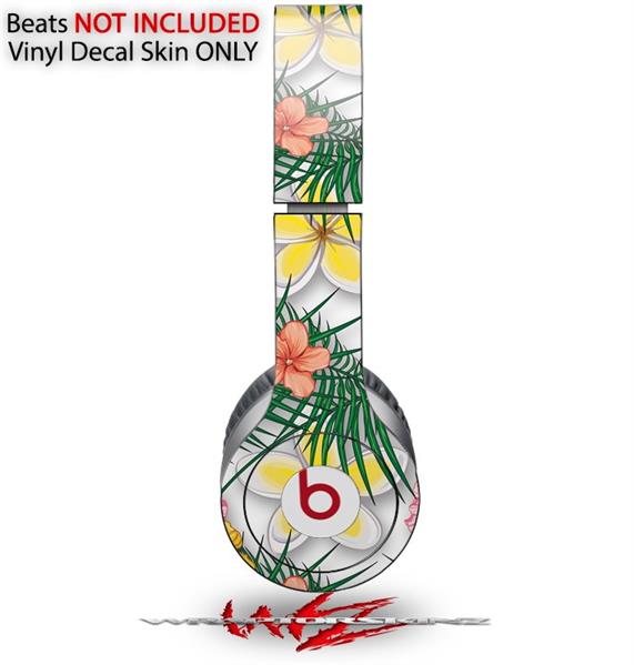 WraptorSkinz Skin Decal Wrap compatible with Beats Solo HD (Original) Beach Flowers 02 White (HEADPHONES NOT INCLUDED)