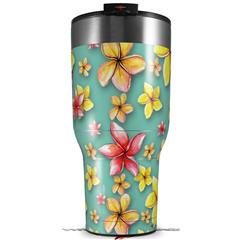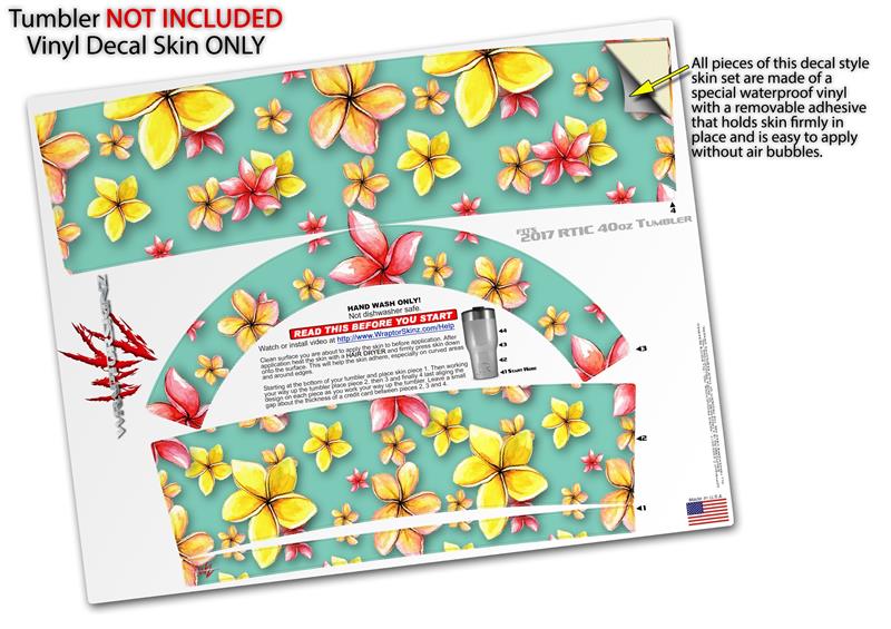 Skin Wrap Decal for 2017 RTIC Tumblers 40oz Beach Flowers Seafoam Green (TUMBLER NOT INCLUDED)
