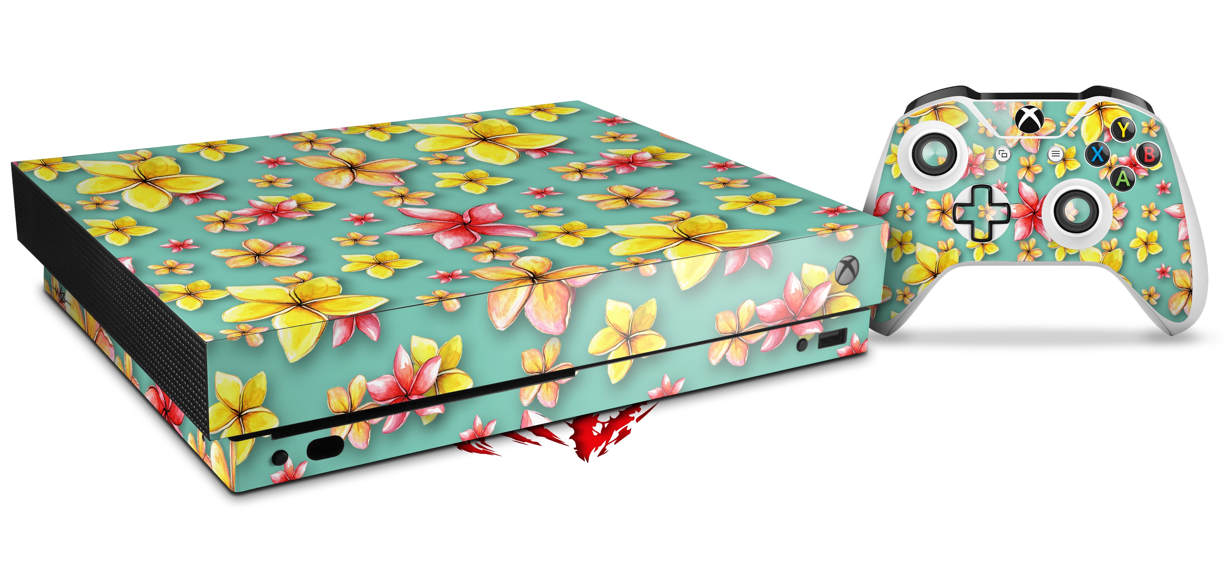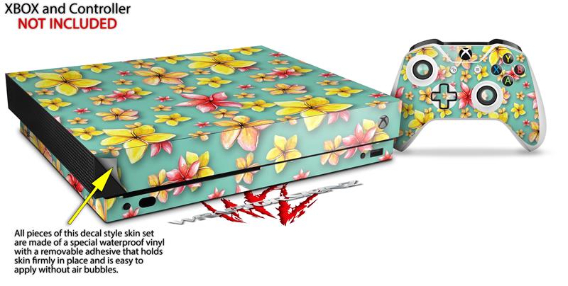 Skin Wrap for XBOX One X Console and Controller Beach Flowers Seafoam Green