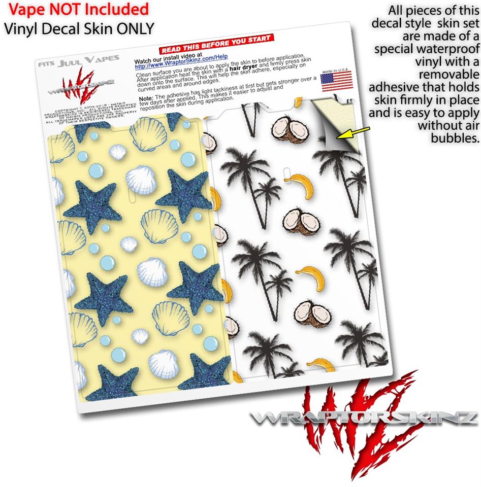 Skin Decal Wrap 2 Pack for Juul Vapes Starfish and Sea Shells Yellow Sunshine JUUL NOT INCLUDED