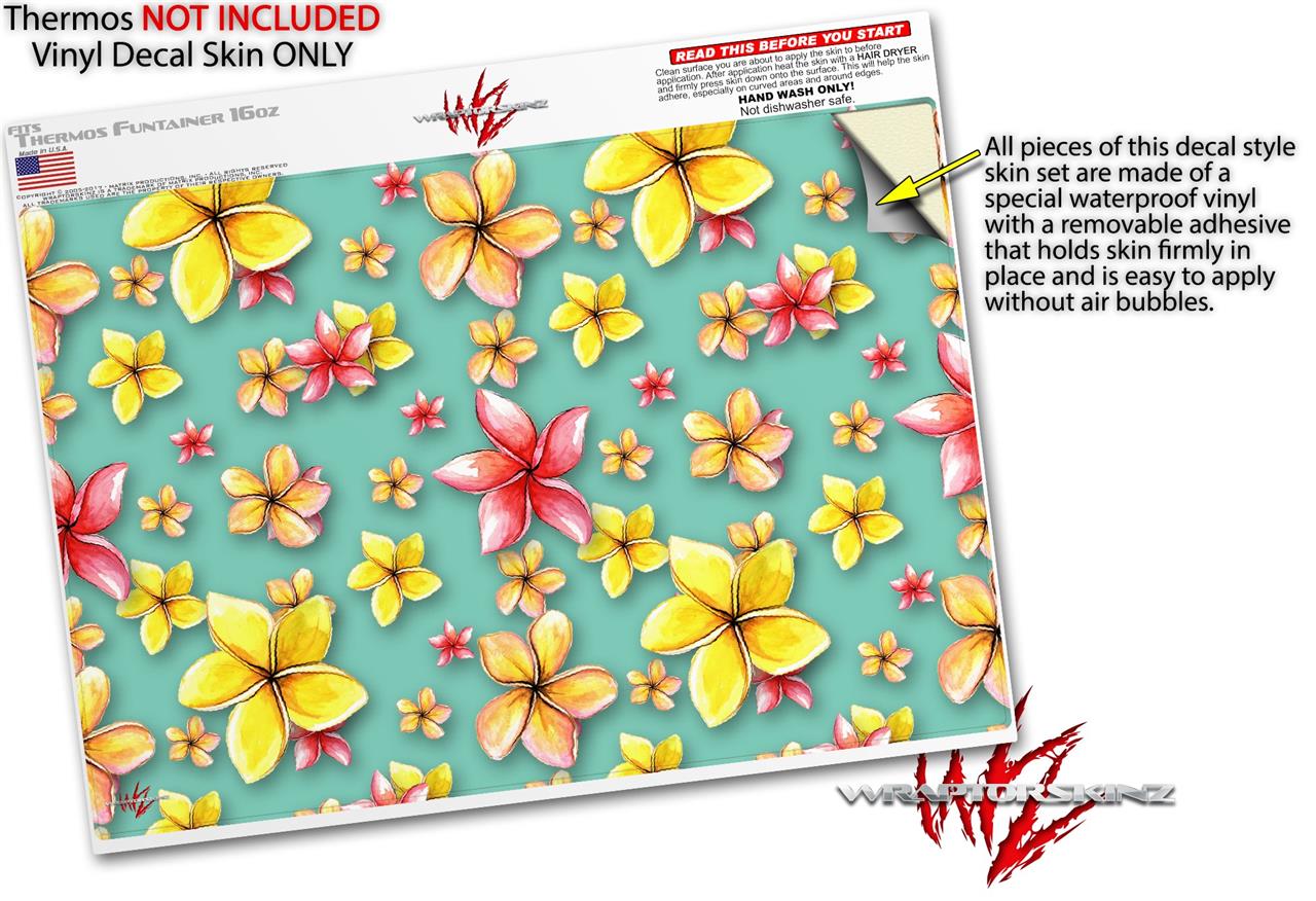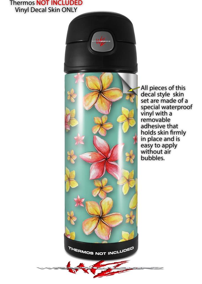 Skin Decal Wrap for Thermos Funtainer 16oz Bottle Beach Flowers Seafoam Green (BOTTLE NOT INCLUDED) by WraptorSkinz