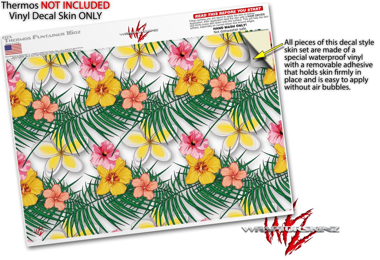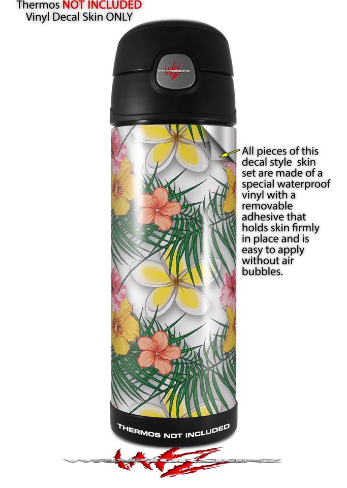 Skin Decal Wrap for Thermos Funtainer 16oz Bottle Beach Flowers 02 White (BOTTLE NOT INCLUDED) by WraptorSkinz
