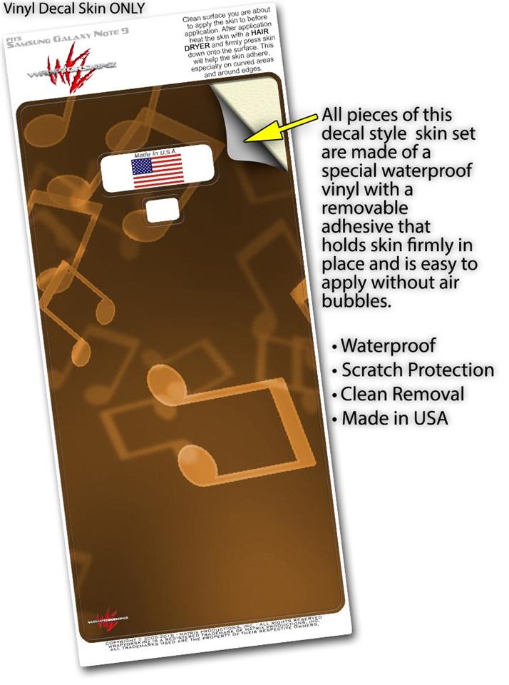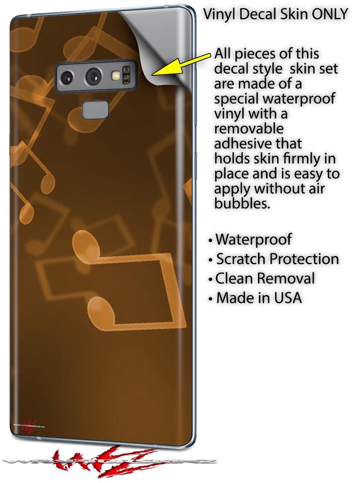Decal style Skin Wrap compatible with Samsung Galaxy Note 9 Bokeh Music Orange