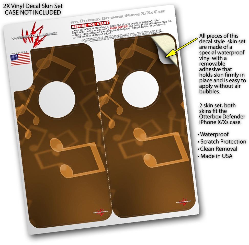 2x Decal style Skin Wrap Set compatible with Otterbox Defender iPhone X and Xs Case - Bokeh Music Orange (CASE NOT INCLUDED)