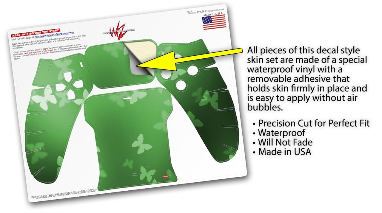 WraptorSkinz Skin Wrap compatible with the Sony PS5 DualSense Controller Bokeh Butterflies Green (CONTROLLER NOT INCLUDED)