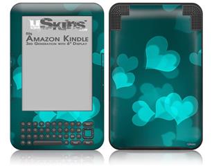 Bokeh Hearts Neon Teal - Decal Style Skin fits Amazon Kindle 3 Keyboard (with 6 inch display)