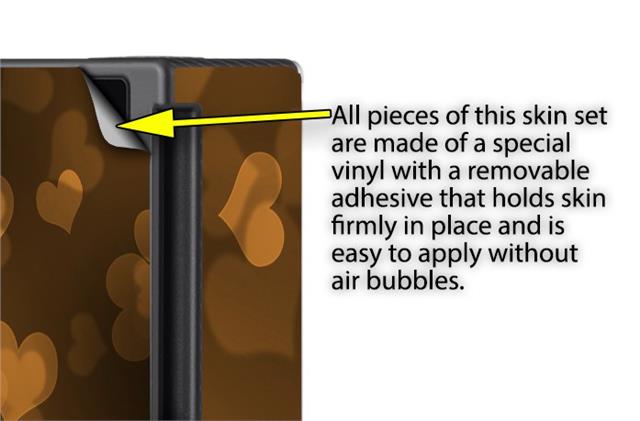 WraptoSkinz™ skins are superb photo quality designs and vibrant colors printed with special Eco-Friendly, fade resistant inks. Our skins are self-adhering flexible vinyl skins that helps prevent scratches. Made of composite, multi-layered commercial grade materials. The bottom layer is made with a special removable adhesive that is easily positioned and applied without air bubbles. We print your design on the bottom layer then bond a professional grade laminate over the entire skin adding a glossy protective finish.