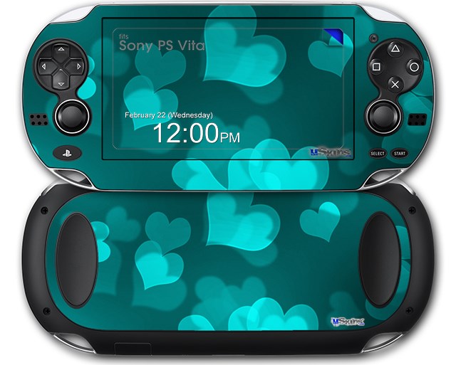 Bokeh Hearts Neon Teal - Decal Style Skin fits Sony PS Vita
