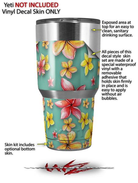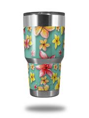Skin Decal Wrap for Yeti Tumbler Rambler 30 oz Beach Flowers Seafoam Green (TUMBLER NOT INCLUDED)