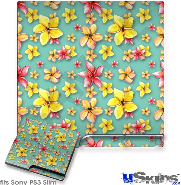 Decal Skin compatible with Sony PS3 Slim Beach Flowers Seafoam Green